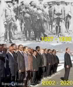 Comme vous pouvez le voir sur la première image, il s’agit de tirailleurs Noirs/Africains qui ont aidé les colons à tuer d’autres Noirs/Africains, à balkaniser l’Afrique et à conquérir les terres des populations Noires/Africaines. Cela s’est produit entre 1827 et 1930. Et, entre 2000 et 2022, sur la deuxième image, comme vous le constaterez (au Soudan, au Kongo, au Rwanda, en Côte d’Ivoire, au Mali, en Libye, en République Centrafricaine, au Kameroun, au Tchad, au Nigeria; Etc.), sous la bannière de l’ONU/casques bleus, de nouveaux tirailleurs Noirs/Africains ont aidé et continuent d’aider les colons à tuer d’autres Noirs/Africains, à balkaniser l’Afrique et à conquérir les terres des populations Noires/Africaines. « Un seul individu/une seule personne blanche tourne le dos à des dizaines d’individus/de personnes Noires/Africaines. (Les bons enfants/élèves de la république coloniale) ».